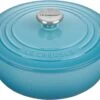 The iconic Le Creuset Dutch oven is indispensable in the kitchens of home cooks and professional chefs alike. Long recognized for its strength and durability, cast iron is the prime material for slow-cooking, braising and roasting, thanks to its ability to maintain even and consistent heat. The enameled Dutch oven needs no seasoning, and it’s suitable for both stovetop and oven use. The oval shape is particularly suited to longer cuts of meat or poultry.