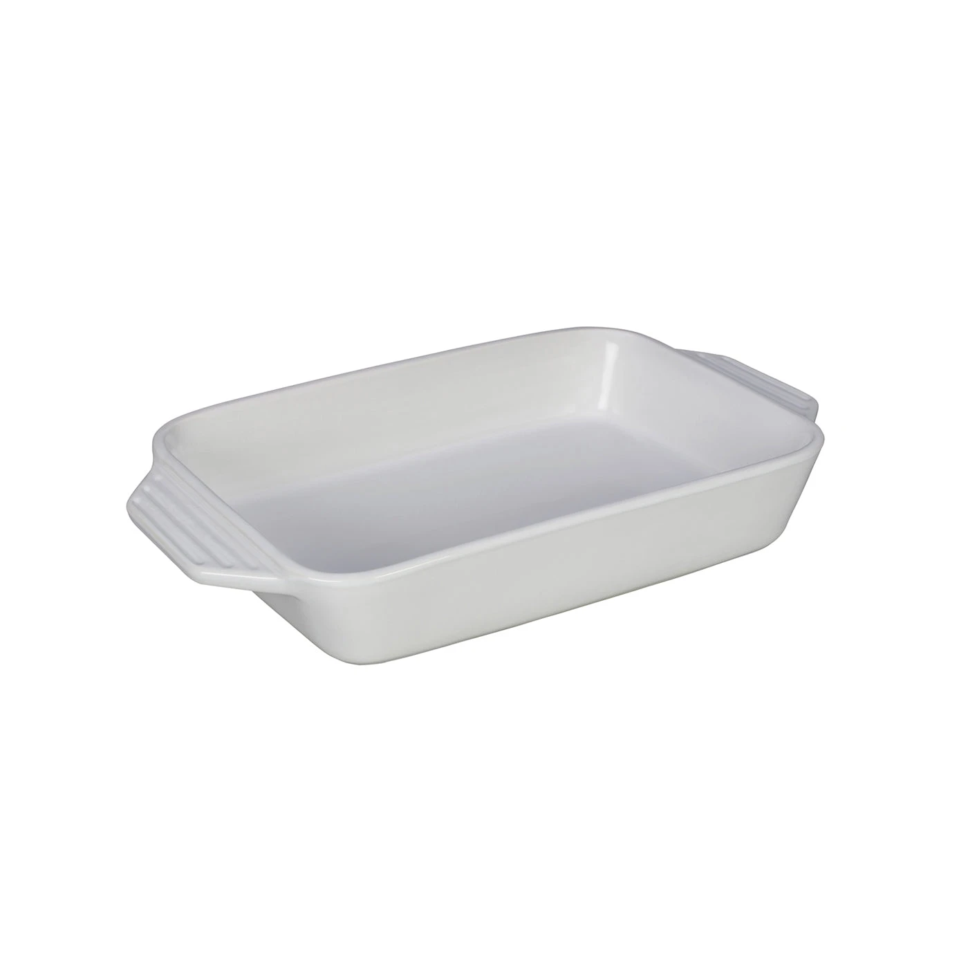 The 3 3/20 qt. rectangular dish is deep enough for lasagnas and roasts – even with a layer of vegetables underneath to create an organic roasting rack for meats.